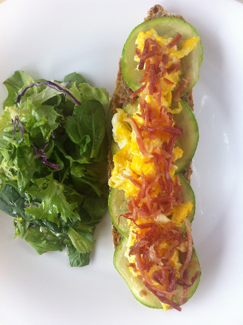 | Tosta de calabacín, huevo revuelto y jamón |