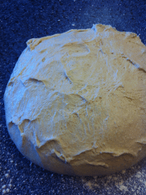 Amasamos durante 10 minutos sobre la mesa de trabajo untada con aceite, hasta que la masa quede lisa y pegajosa pero que no se pegue a la manos y terminamos en forma de bola. Si notamos que la masa está demasiado floja y no se puede amasar bien podemos dejarla reposar 10 minutos y volver a amasar (método Dan Lepard de breve amasado - reposo) y así cuantas veces creamos necesario.